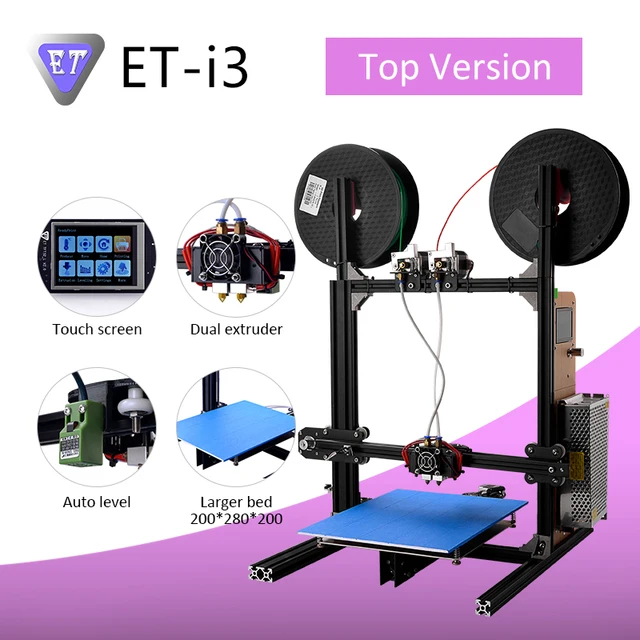 Best Price Newest ET Plus Size 3D Printer I3 with full metal frame High Precision Auto Leveling and Double nozzle Filaments use pla aba